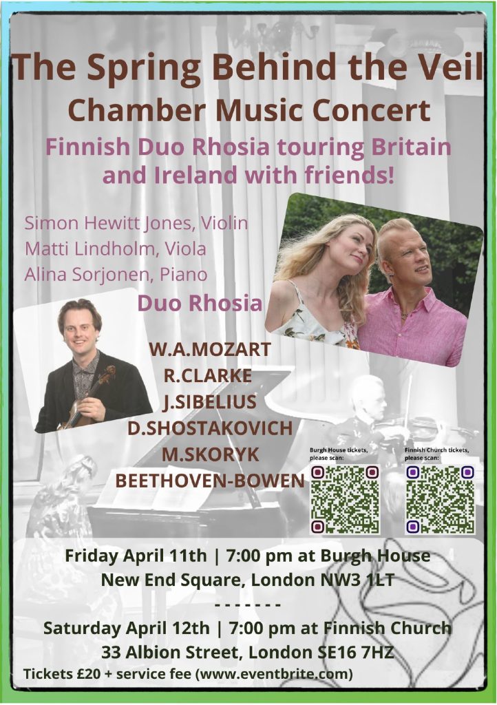 Finnish ensemble Duo Rhosia brings a chamber music evening to London, blending the elegance of classical masterpieces with the soul of Nordic, British, and Eastern European music.